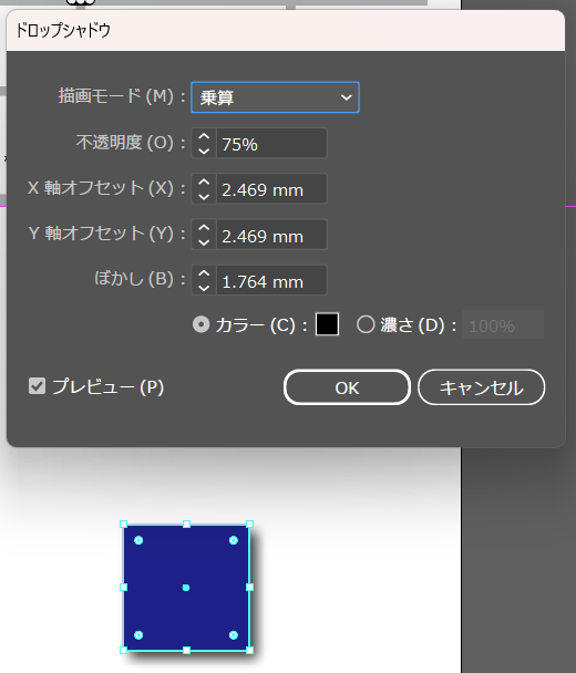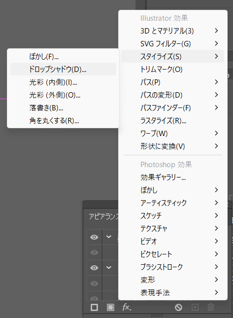 ドロップシャドウは下にオブジェクトを置くとそのオブジェクトにも影をつけてくれる。