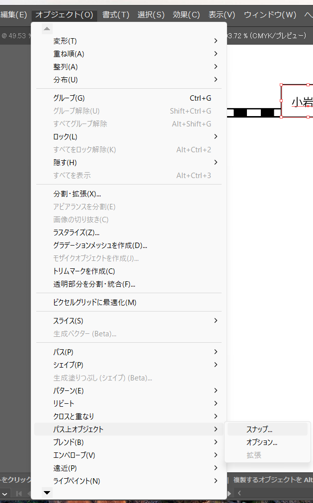 の「スナップ」を選択したら、吸着させたいオブジェクトをクリックする
