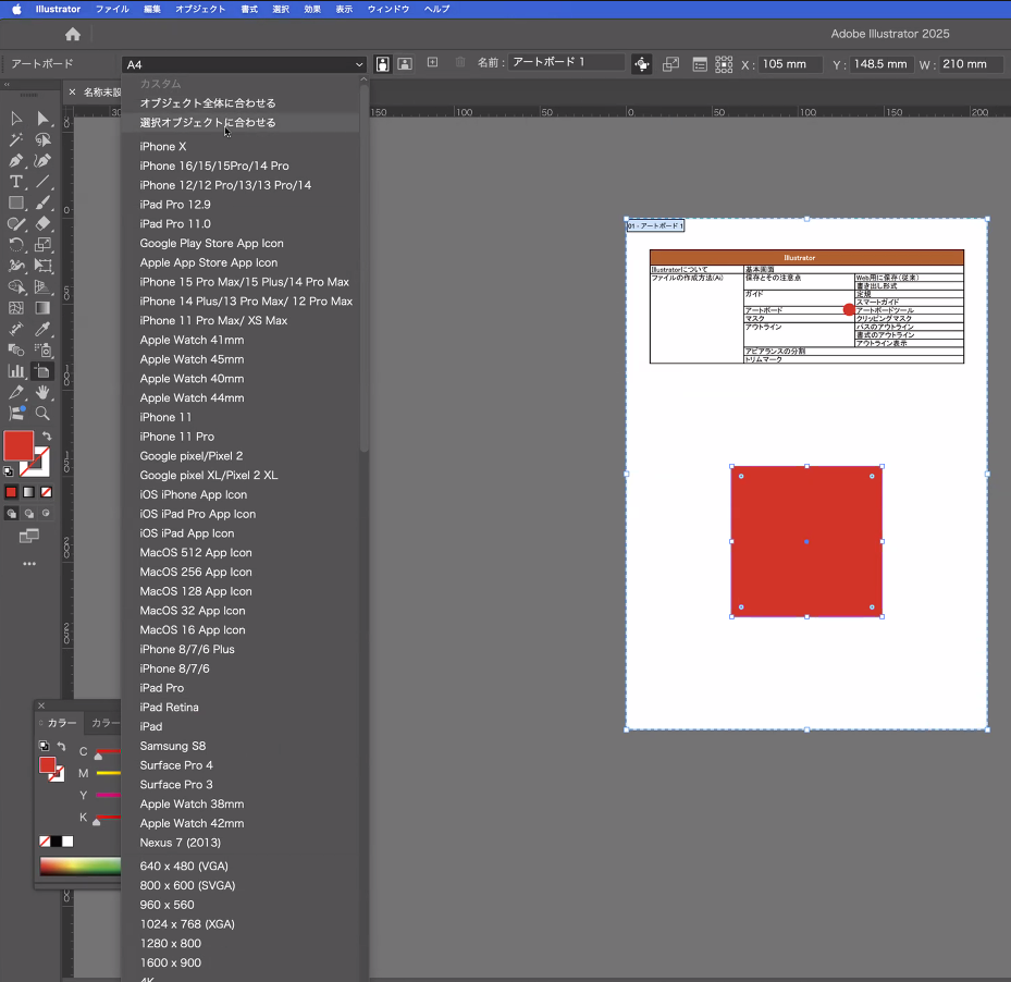 ▢オブジェクトにアートボードの大きさをあわせる方法
