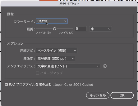 データ形式やカラーモード、解像度など細かく設定したい場合に使用する。