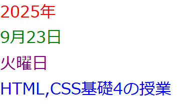 htmlファイルを更新し、保存。その後、ブラウザでhtmlファイルを開き、文字列5の文字の色が紫になっていればインライン記述でのcss反映ができている。