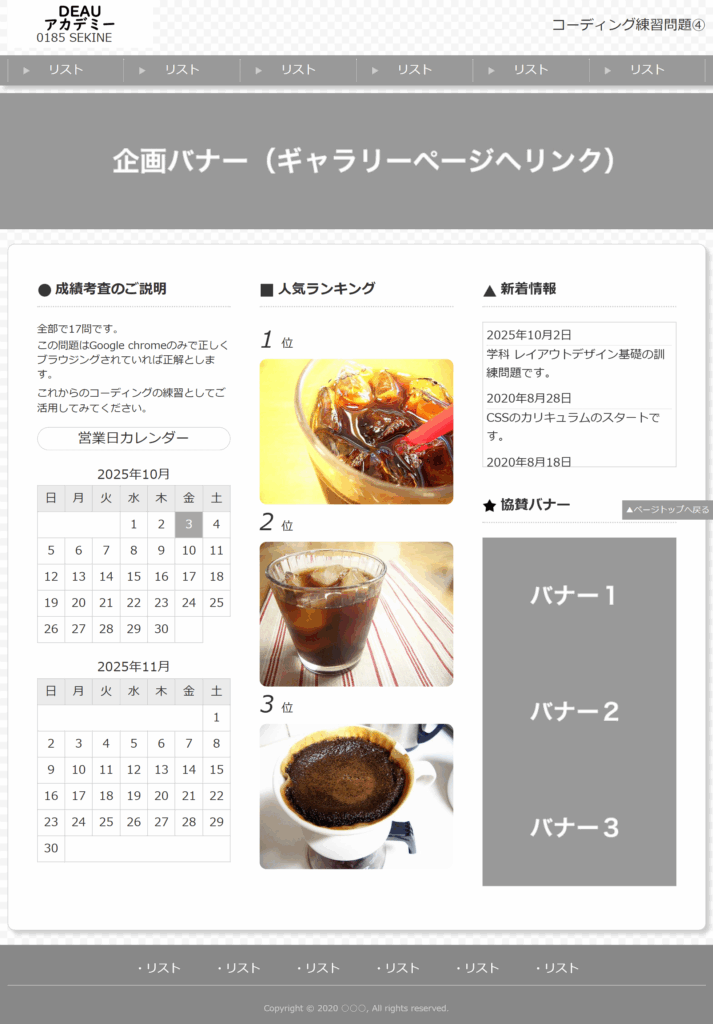 以下の練習問題は、実際のWebページ制作を対象とした練習問題になっている。