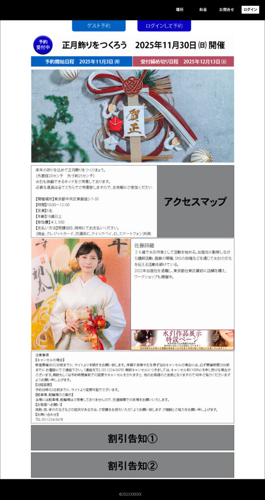 - 講師の告知を追加しました。講師がお得になる部分を作ってみました。