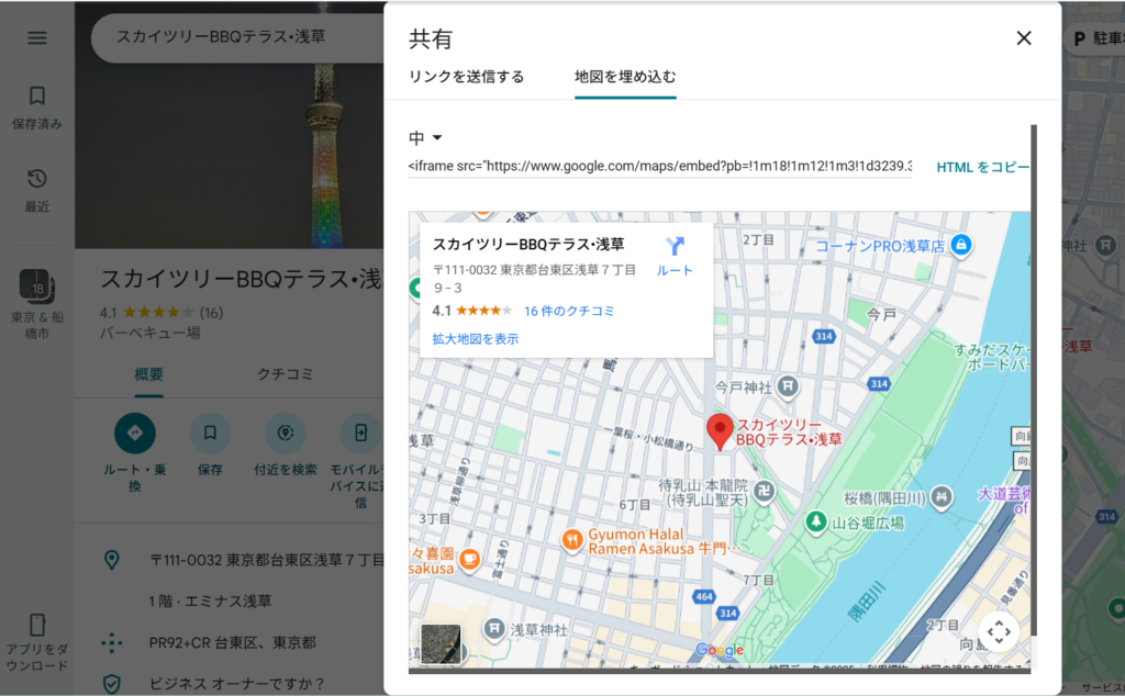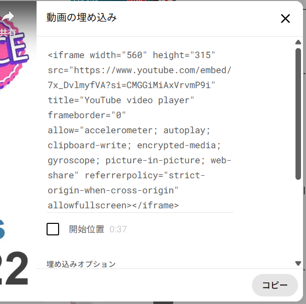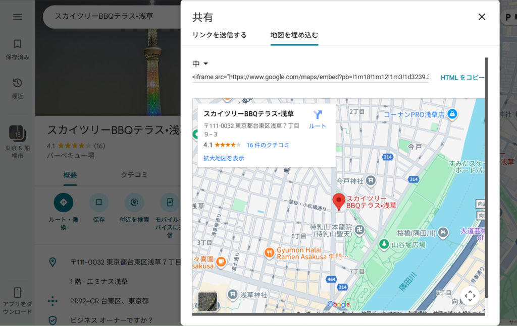 「HTMLをコピー」を押してHTMLに貼り付ける