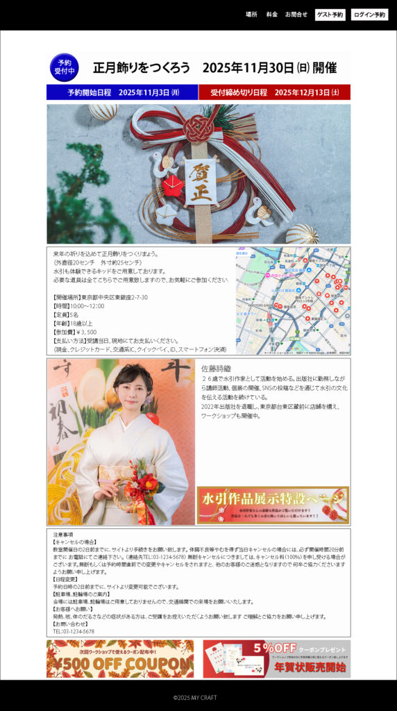 お店で開催しているワークショップ申込みページ