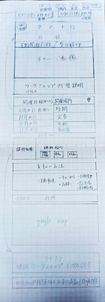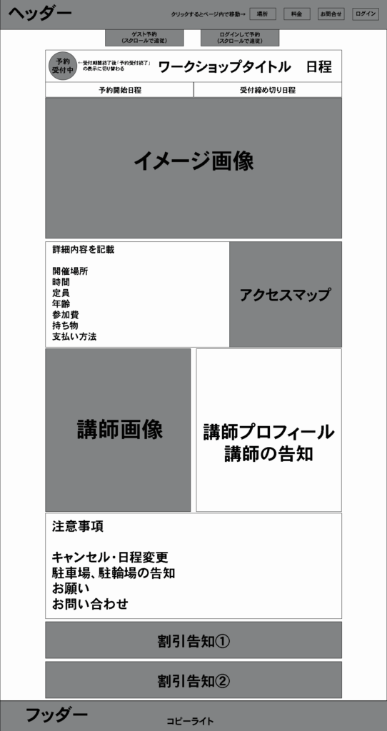 クラフト系資材ショップのワークショップ申込みLPのワイヤーフレーム